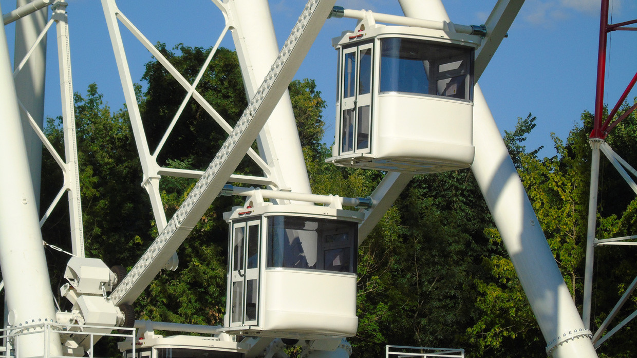 All Cabins or Vehicles are designed to seat 6 guests maximum. La Grande Roue: Could be equipped with different Cabins or Vehicles at customer’s request; Could be completed with a steel base to simplify the installation avoiding any concrete foundations; Could be completed with a large platform with fences. In addition this Wheel could be completed with other options such as Ticket Booth, Control Room or a special Roof to protect bystanders from sun and rain.