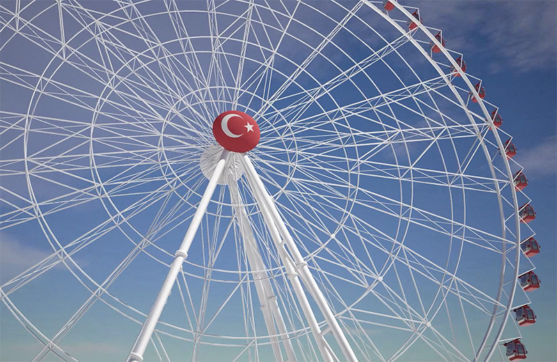Special “high Technology” axles are used for Wheel Types “80 “and over. High resistance to Wind Speed and Seismic factors due to a special patented innovation that allows us to spread stress in a proper way amongst the structure. Easy solution for structural elements transportation and installation, especially for the Wheel Types “80” and over In addition this Wheel could be completed with other options such as Ticket Booth, Control Room or a special Roof to protect bystanders from sun and rain.